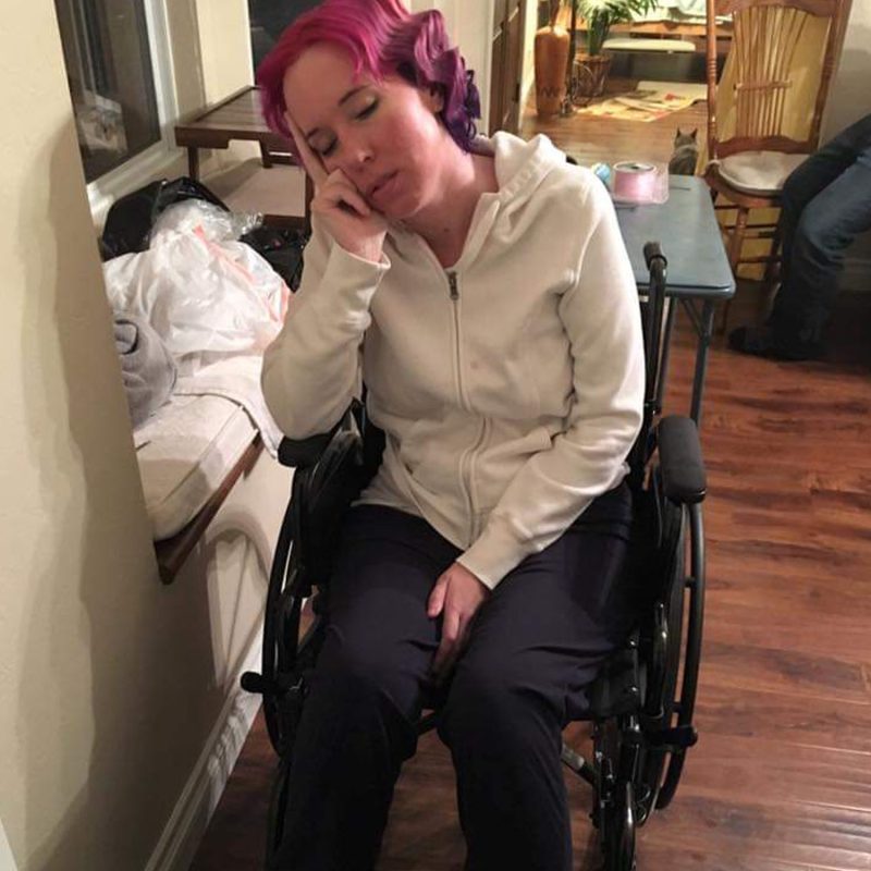 In Spring 2016, I woke up and I couldn’t walk on my right foot. In 6 months, I was wheelchair bound which lasted for 2 years. I was finally diagnosed with CIDP, chronic inflammatory demyelinating polyneuropathy. It’s a rare immune disorder where the immune system attacks the myelin my nerves are encased in. So my poor nerves can’t send signals as fast as they used to or sometimes not at all. Which means sharp pains, muscle weakness, extreme fatigue and feeling like your skin is on fire.